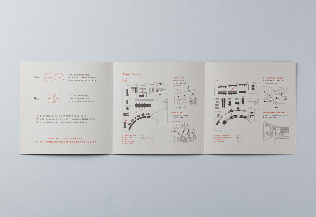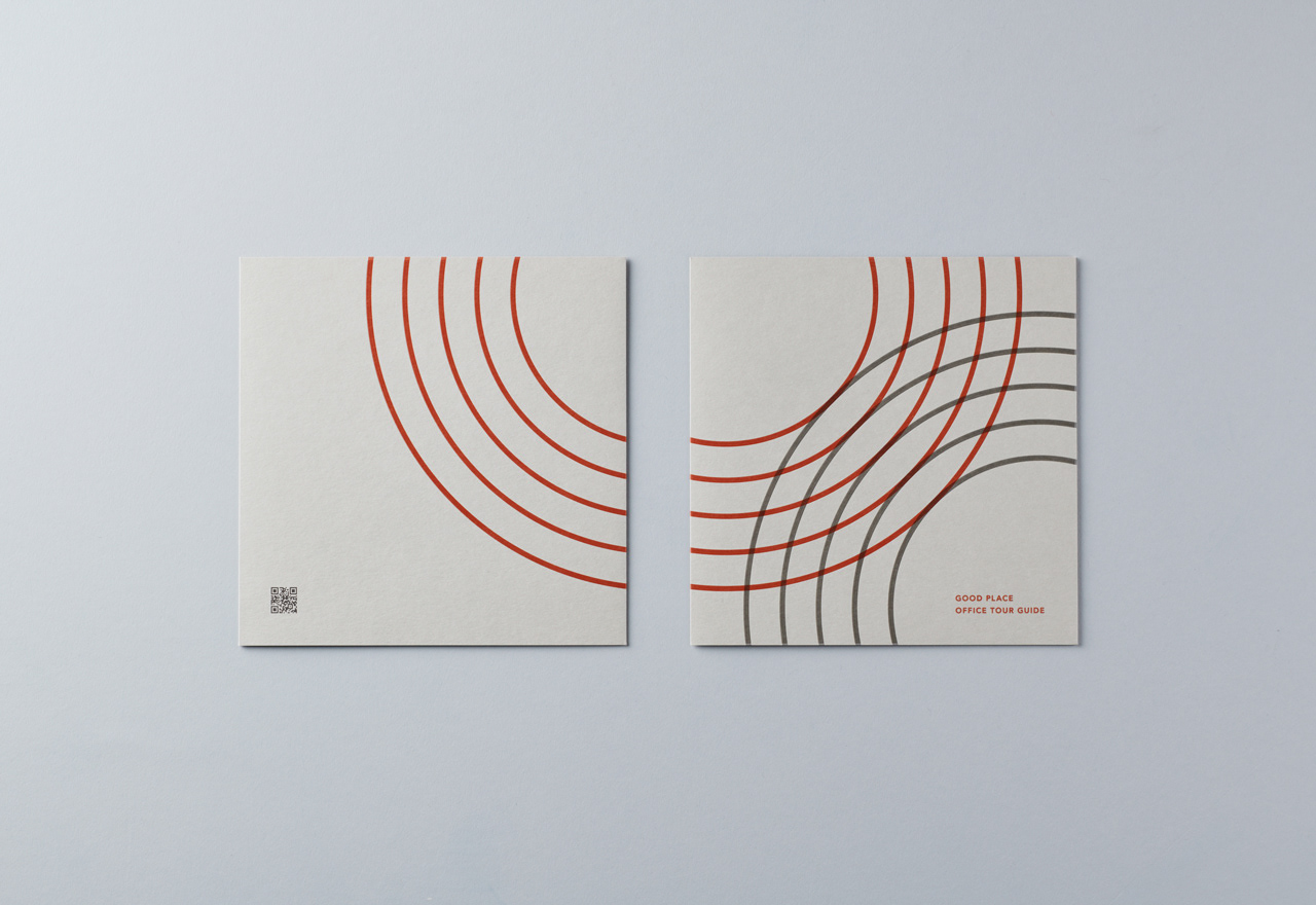 GOOD PLACEはリクルートグループのリフォーム業務を手がける企業として1990年に事業活動をスタート。その後オフィスや住宅、商業施設の構築、バックオフィス業務の受託事業を展開してきました。新たな働き方のコンセプト「Harenoba」をテーマにオフィスをリニューアル。path.は会社案内リーフレットをデザインしています。表紙は「Harenoba」の「Life」と「Work」が重なり合う、柔軟な考え方を円をモチーフに表現。立体にニス引きをして、シンプルでありながら手触りが印象に残るデザインにしています。コンセプトを見開きで伝え、中面では新たに構成されたオフィスを心地の良いムードのイラストも交えて案内しています。会社案内として手に取った人が大切に見たくなるような意識で細部までデザインをしています。