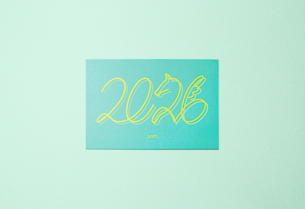 2026年の年賀状。2026のタイポグラフィを干支の馬から想起される、芸術を司るペガサスを表現。