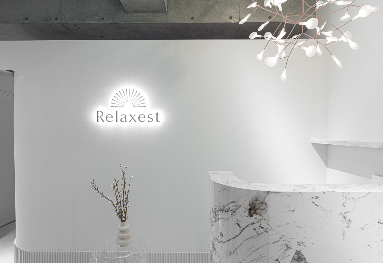 Relaxestは五感で味わう極上のリラックス体験を提供する美容鍼灸サロン。施術に加えて音と香りのアプローチからも眠りの質を高め内側、外側から美しさを引き出します。ロゴマークは施術によって満たされる気持ちを、鍼灸の針と内側から溢れる光をモチーフに表現しています。ロゴタイプは品質の中に安らぎを感じさせるモダンで高級感のあるタイポグラフィで構築しています。